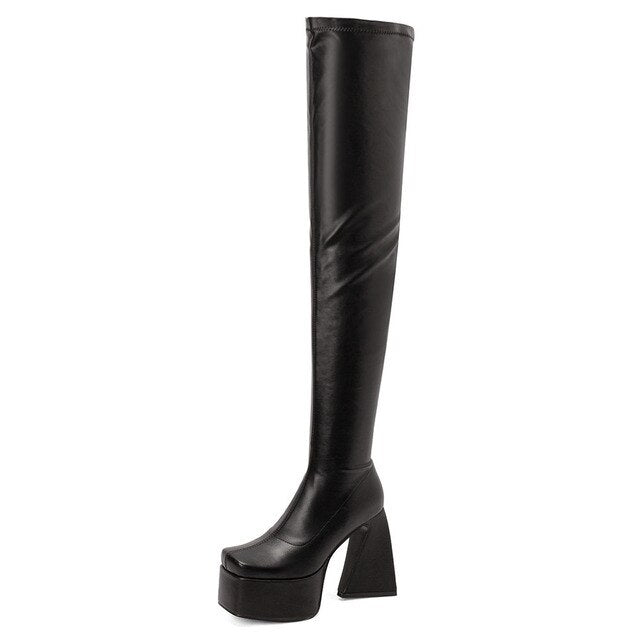 SPECIFICATIONS   Style: Punk Shaft Material: PU Season: Spring/Autumn Platform Height: 3-5cm Pattern Type: Solid Outsole Material: Rubber Model Number: high boots Lining Material: Short Plush Item Type: Boots Insole Material: PU Heel Type: Strange Style Heel Height: Super High...