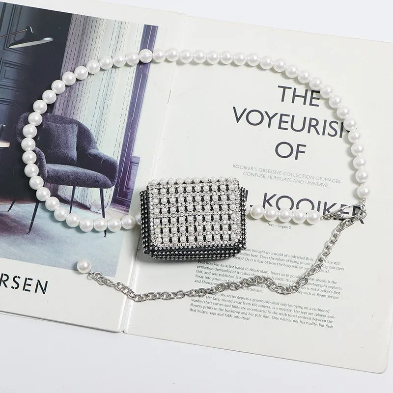 SPECIFICATIONS Material Composition: PU Leather Model Number: ZM1311 Shape: Box Gender: WOMEN Item Length: 8 Item Type: WAIST PACKS Style: fashion Strap Drop: 103 Pattern Type: Solid Material: PVC + artificial pearlPearl chain length: 103cm Chain width: 1.2cm Bag size: 8*6*2cmNote: The...