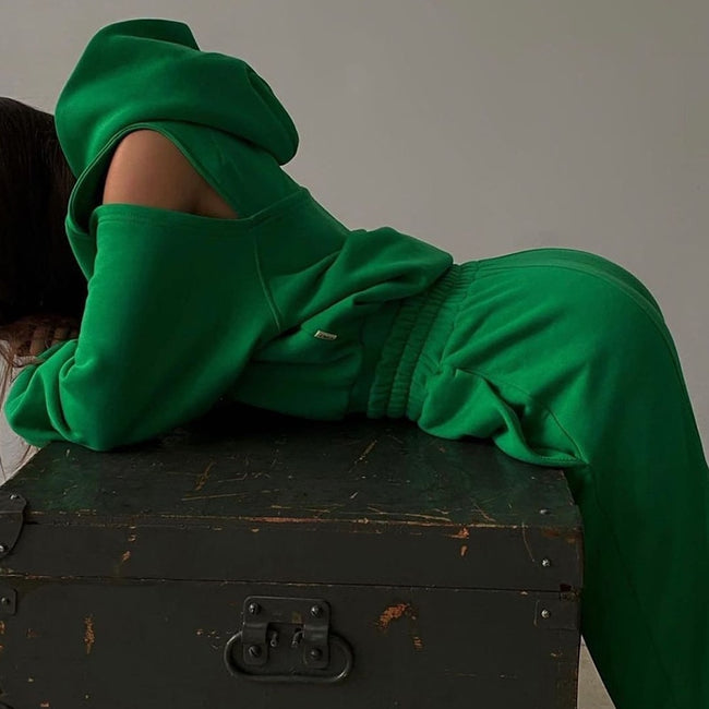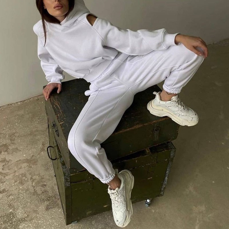 Women 2 Piece Sportswear Sets 2022 New Female Casual Hollow Hoodies Outfits Women's Trouser Suit Waist Elastic Sweatpants Suit